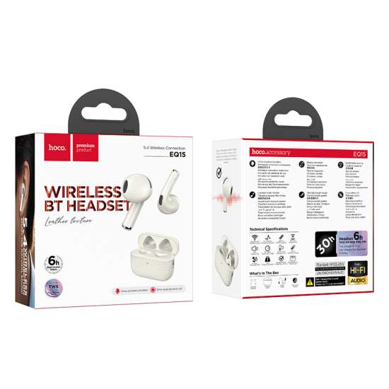 AURICOLARI HOCO EQ15 BLUETOOTH + CUSTODIA/BASE DI CARICA BIANCO (BLISTERATO)