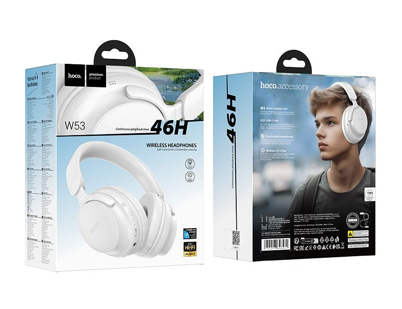 CUFFIE HOCO + MICROFONO BLUETOOTH W53 BIANCO (BLISTERATO)